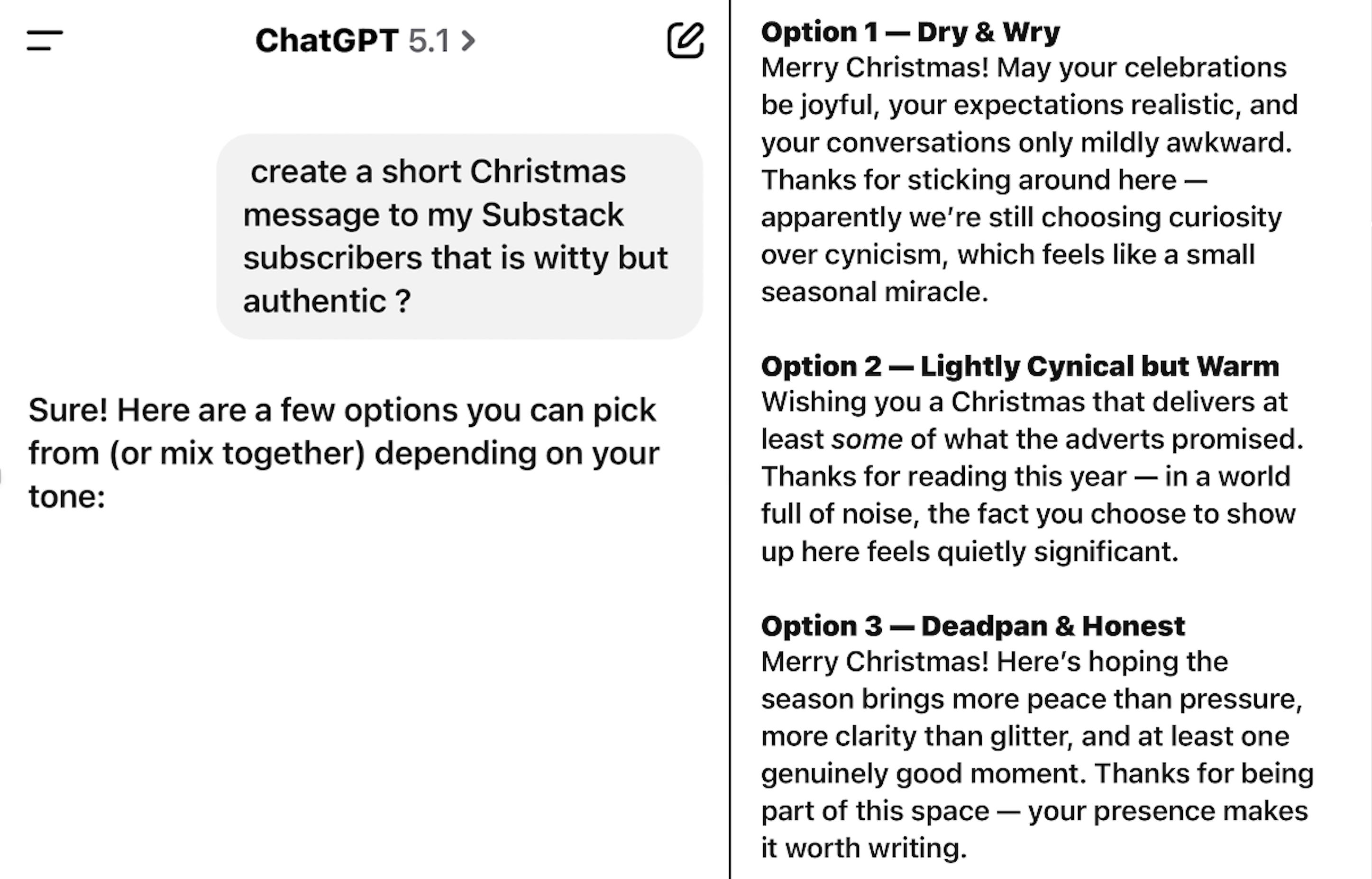 A hospital ward where laughter was forbidden, a return to Liverpool with JLR, and ChatGPT offers a range of festive greetings