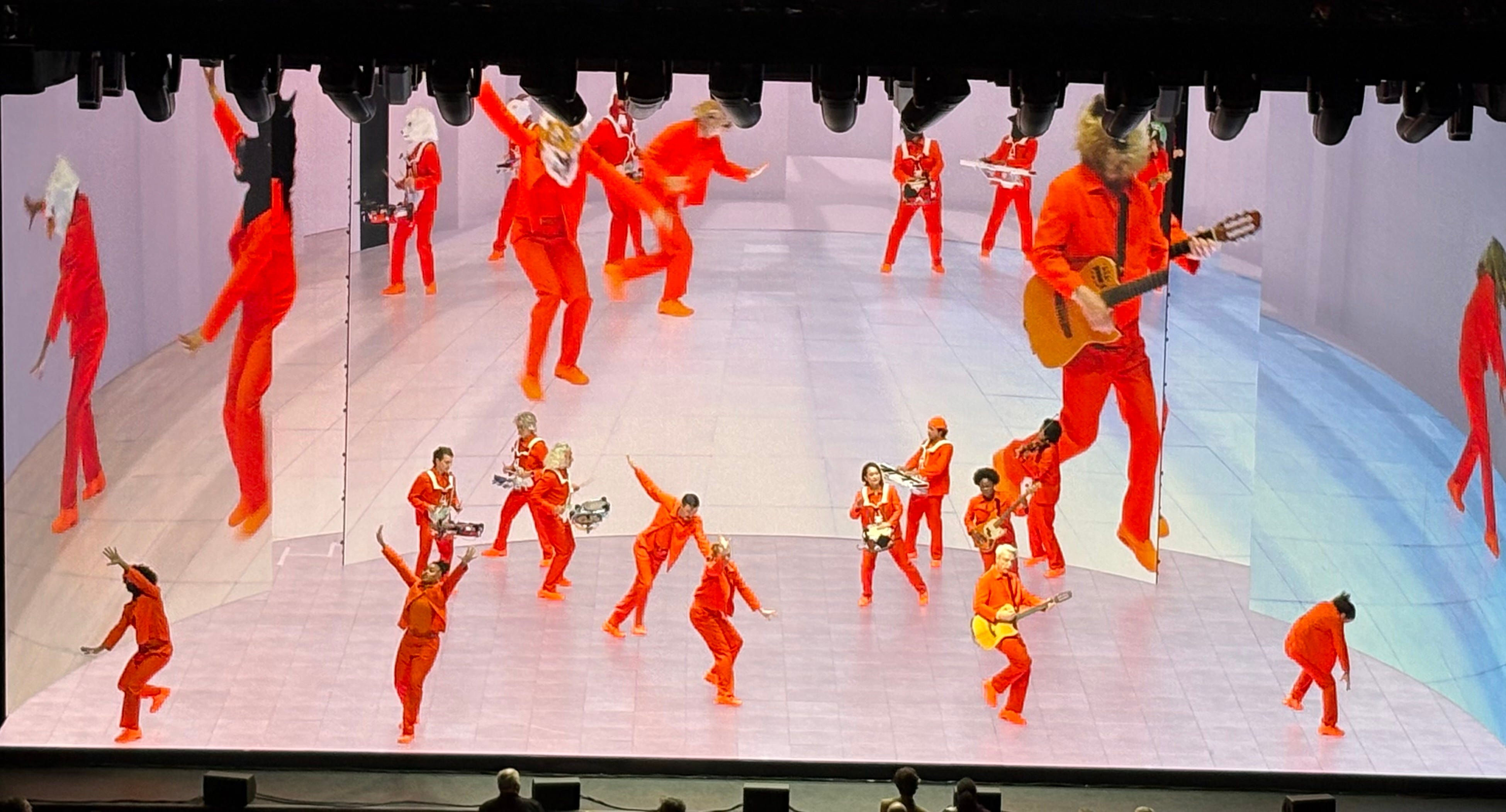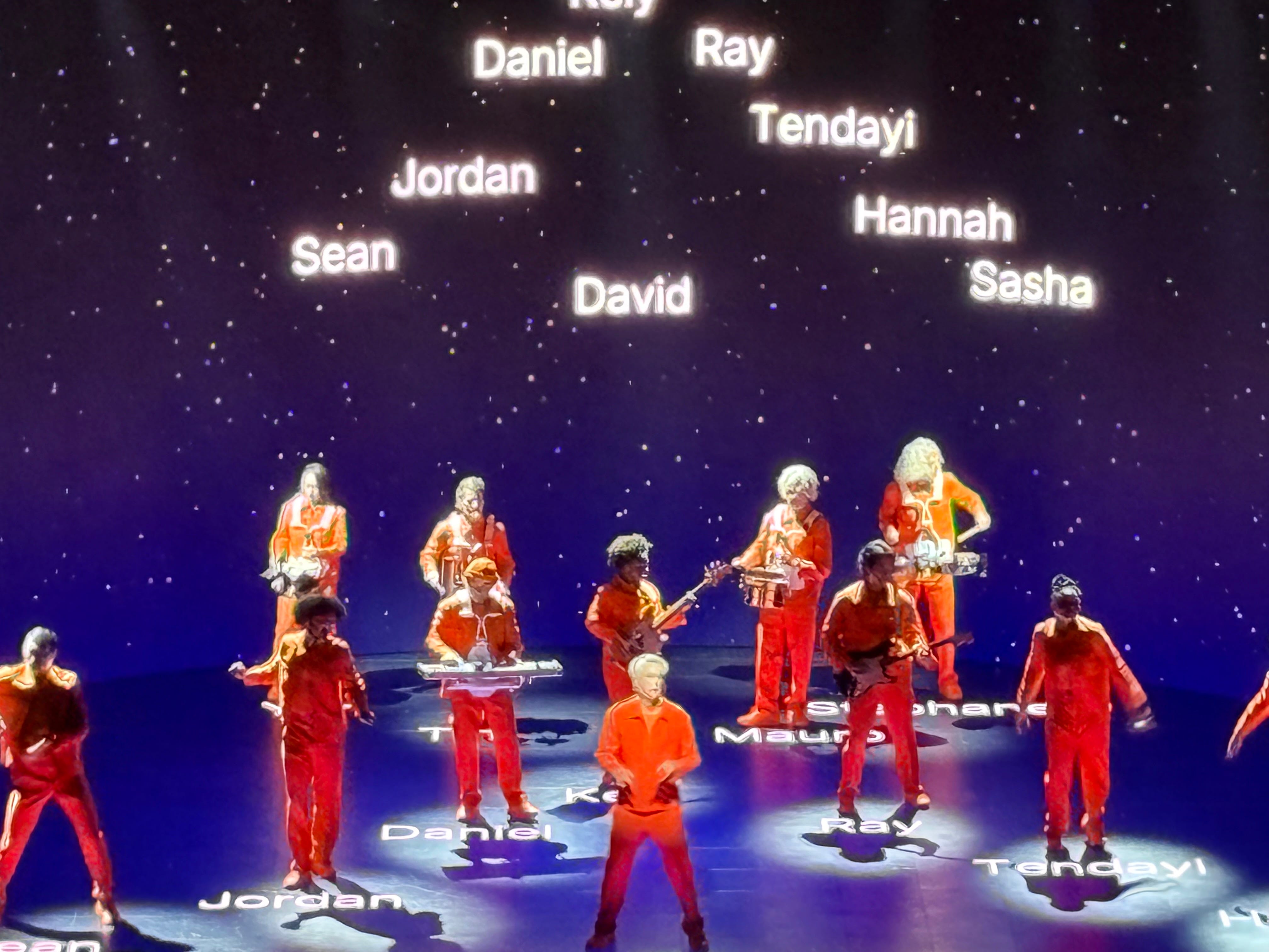 Byrne looked visibly delighted to be part of the ensemble rather than towering over it. He’s built something so tight, so well-drilled, that his own performance was elevated by the collective. The show used stage tech to name-check each performer individually, their names appearing and moving with them as they crossed the stage.
